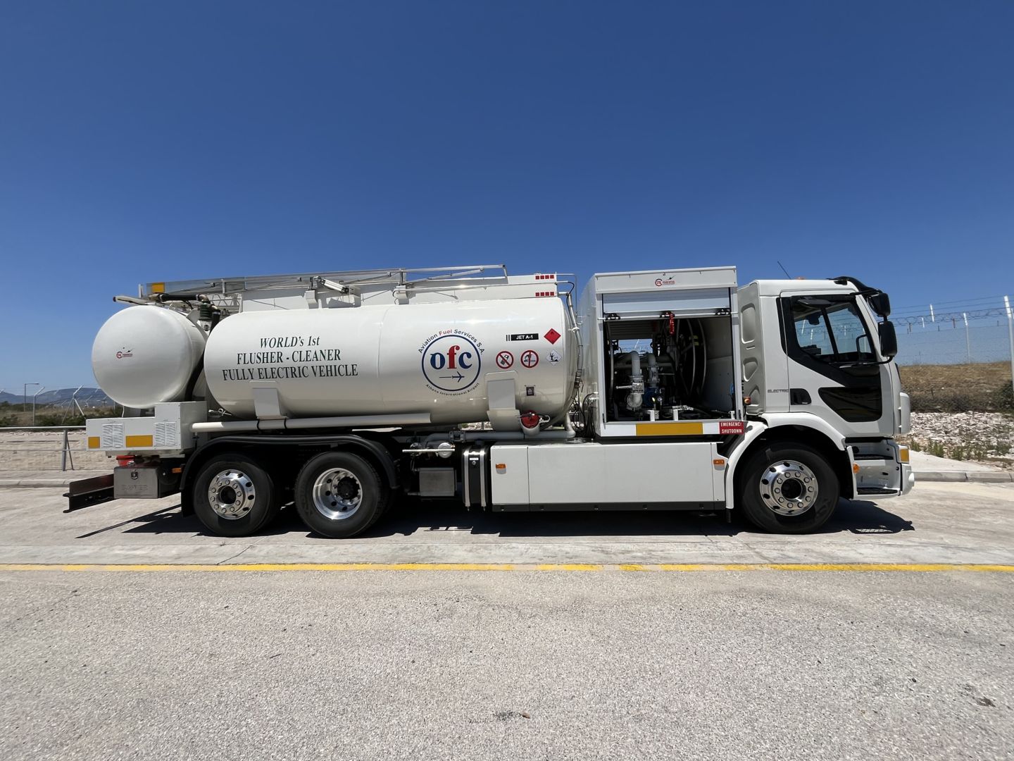Πρόκειται για το πρώτο παγκοσμίως ηλεκτρικό φορτηγό τύπου Flusher/Cleaner, βασισμένο σε πλαίσιο Volvo FE, ειδικά σχεδιασμένο ώστε να εκτελεί δύο κρίσιμες λειτουργίες: την ποιοτική δειγματοληψία του καυσίμου και τον καθαρισμό των αγωγών του συστήματος ανεφοδιασμού των αεροσκαφών.
